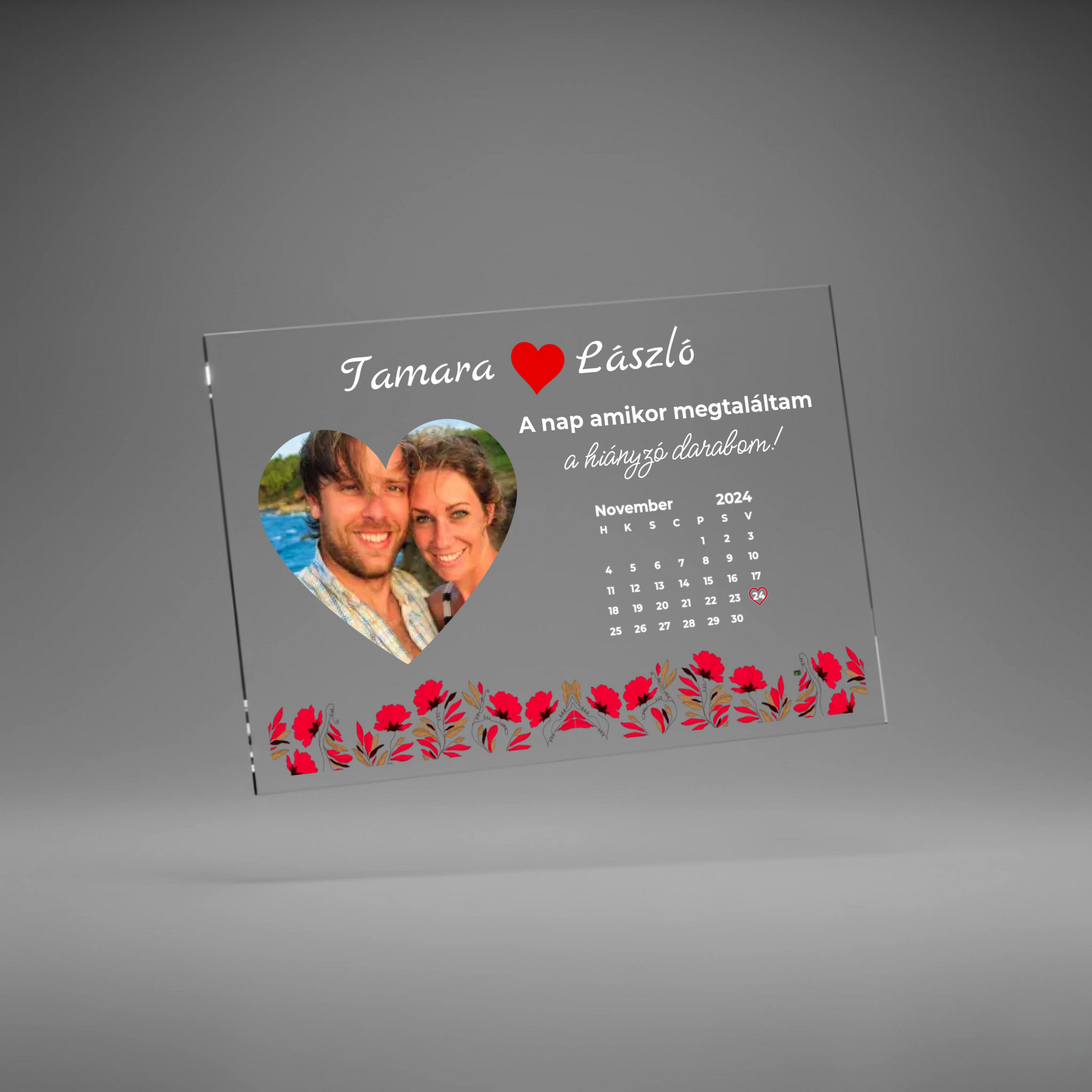✅ Személyre szabható: fotó, nevek, dátum, idézet
