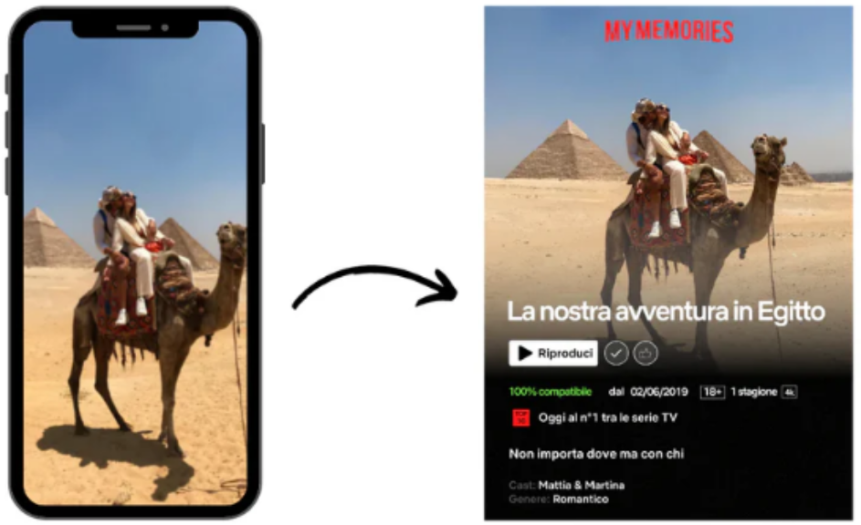 A párommel közös évfordulónkra rendeltem az animált Netflix‑posztert. Amikor kibontottuk a gyönyörű, romantikus boxot, mindketten elolvadtunk. A fotó szépen illeszkedik a sablonba, a videofunkció lenyűgöző volt: az app pillanatok alatt beolvasta a posztert, és a zenével együtt életre keltette a történetünket. Igazi élmény volt!